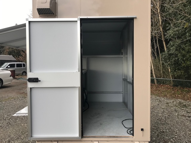 コンテナ中古、L型ケース、右常温ストッカー室、中温2コンプ仕様(冷媒134a)