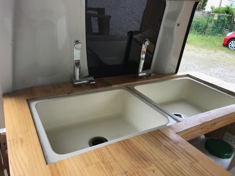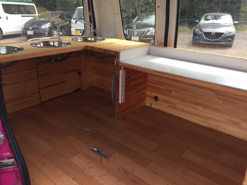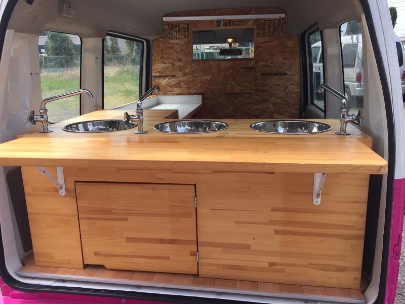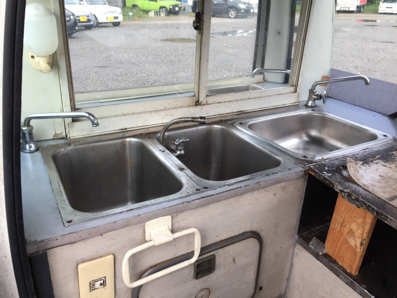 ルーフアップ型! 車検たっぷりの32年5月! リア部分 1槽シンク! 車内 3槽シンク !